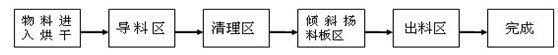 傾斜揚料板區:濕煤泥在此區已呈低水分松散狀態,物料在此區已不具有粘結現象,經過熱交換后物料達到所要求的水分狀態,進入最后的出料區;