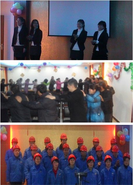 聯歡會上公司不僅安排大家欣賞了勵志電影《當幸福來敲門》、《暖春》,還設計了很多小游戲領導與員工一同參與,營造互動的氛圍。接著公司各部門進行了2011年度總結和2012年的工作展望,共有包括人力資源部、技術研發部、生產1部、生產2部、品管部、客服部在內的多個部門依次做了發言。